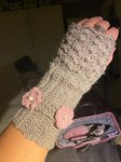 En virknål i storlek 4.0 och ett ullgarn i beige och rosa blir snart ett par torgvantar med snäckskalsmönster och två rosor på mudden. Jag räknar maskorna: 1, 2, 3, 4, 5… och sjunker in i tankarna. Tillbaka till tiden när barnen var små, till skogen i Mellbystrand, till alla de fem tillsammans.