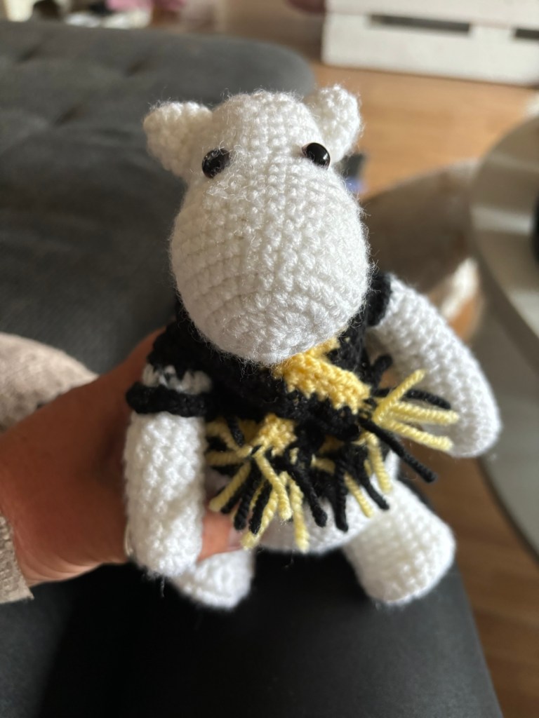 Ibland blir det humor också – som när Mumin fick fel färg på tröjan. AIK:s färger på utsidan, men med hjärtat i Djurgårdens färger 😉. Varje sak får sin egen historia, sin egen mening.